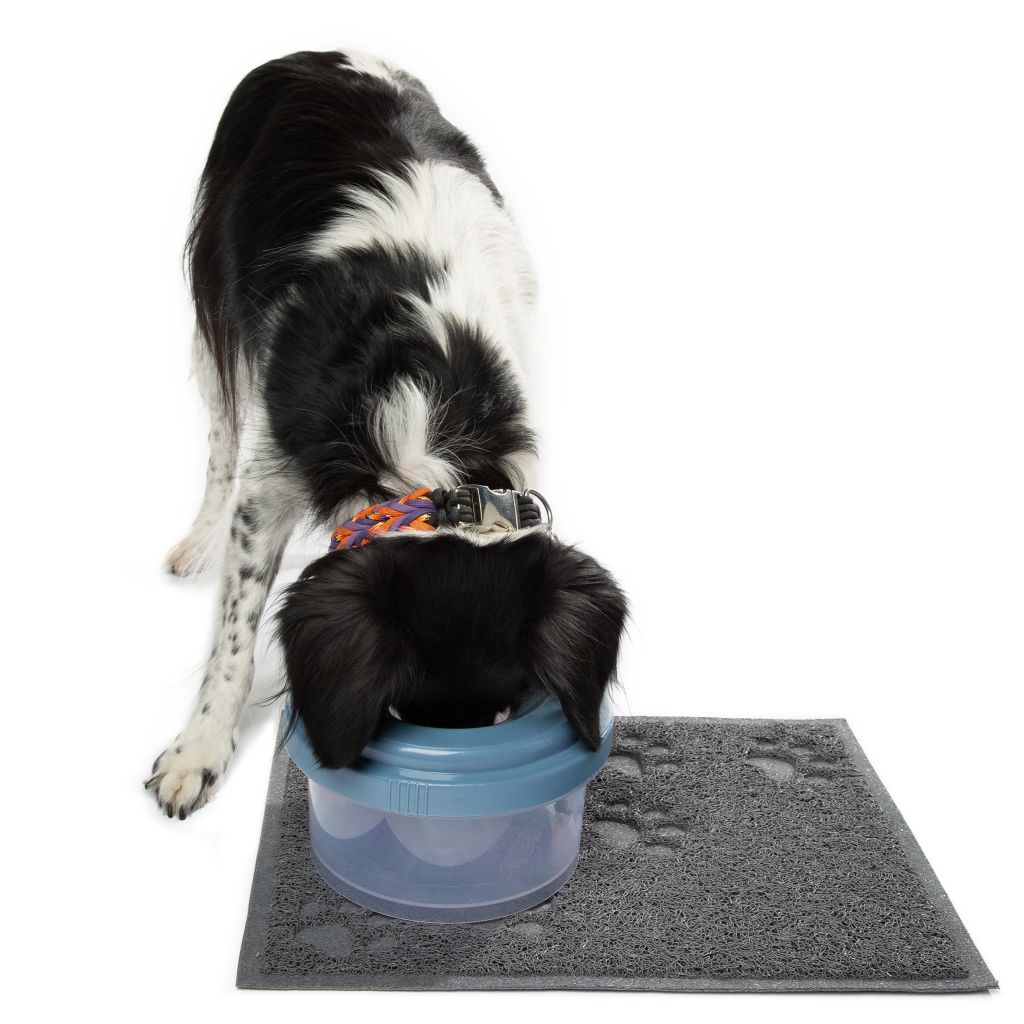 Die Unterlage hält den Boden um die Futterschüssel sauber.