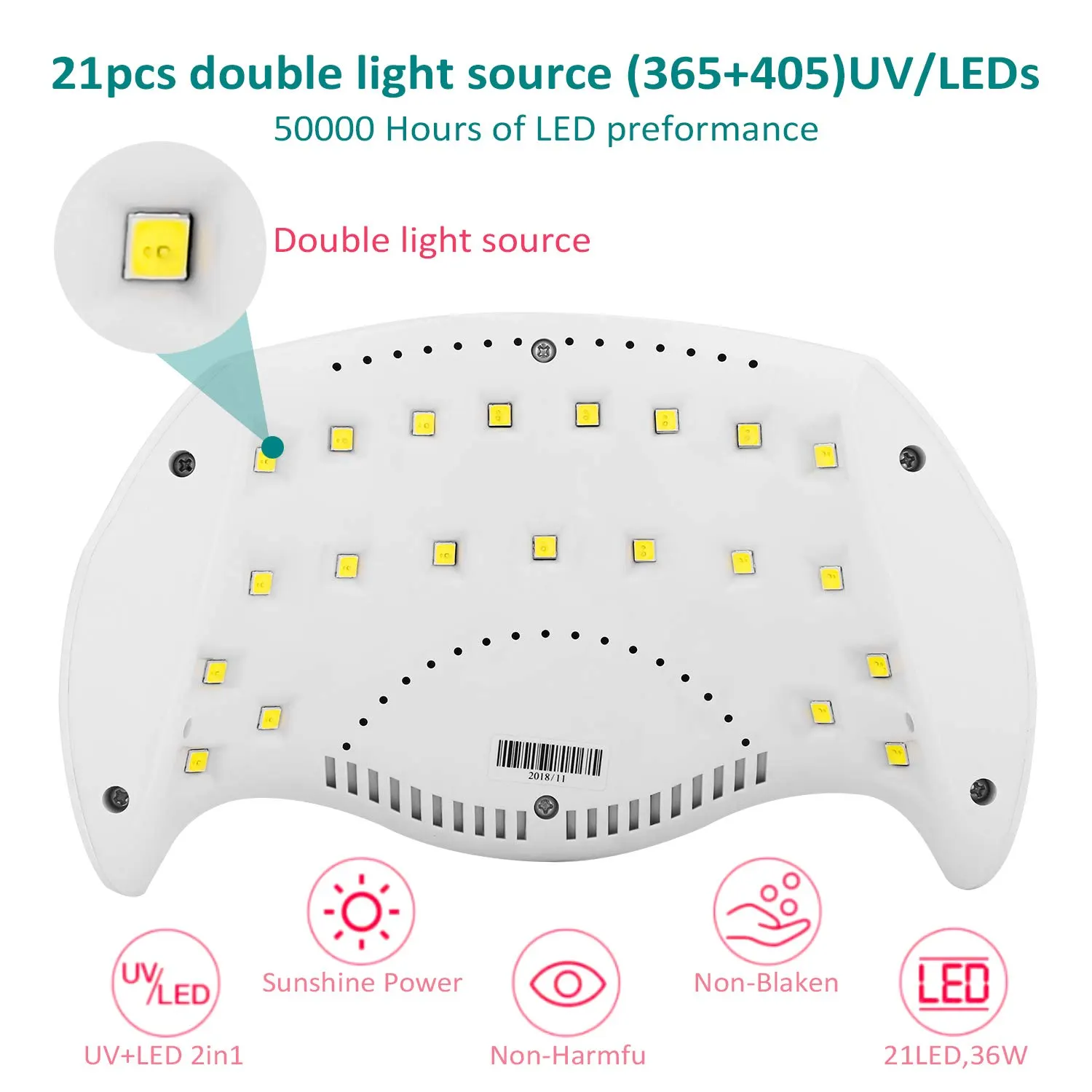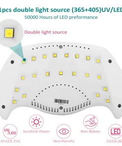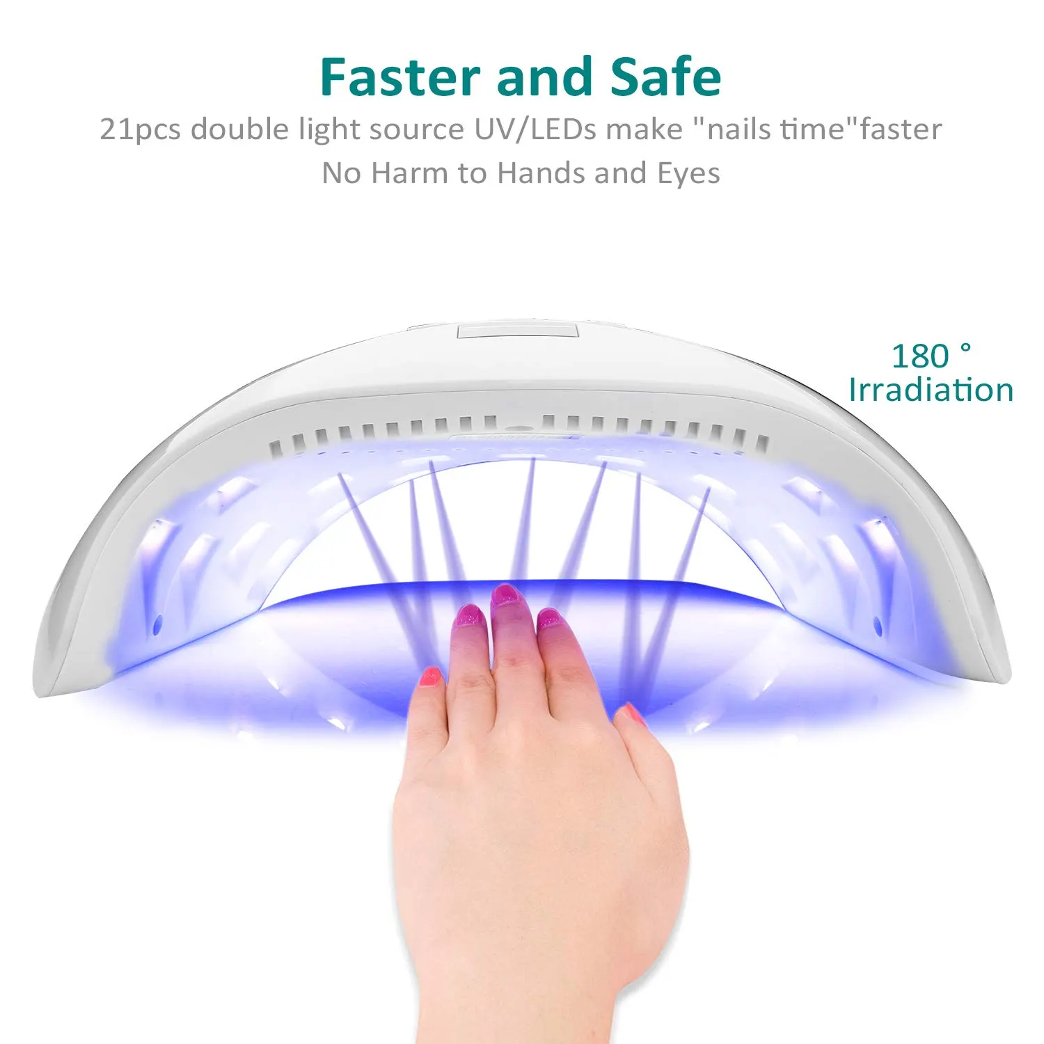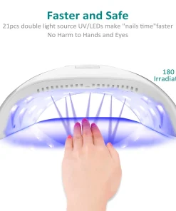 • Langlebig, sicher und effizient trocknen ★ Ausgestattet mit 21 Glühlampen mit Weisslichttechnologie mit doppelter Wellenlänge von 365-405nm, die Augen und Haut nicht schädigt, bis zu 5 Jahre Dauerbetrieb. 48 Watt Leistung und schnell trocknbar, Trocknungseffizienz um 50% im Vergleich zu anderen Trocknern