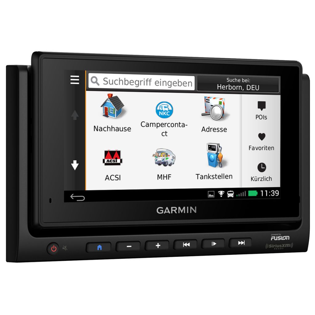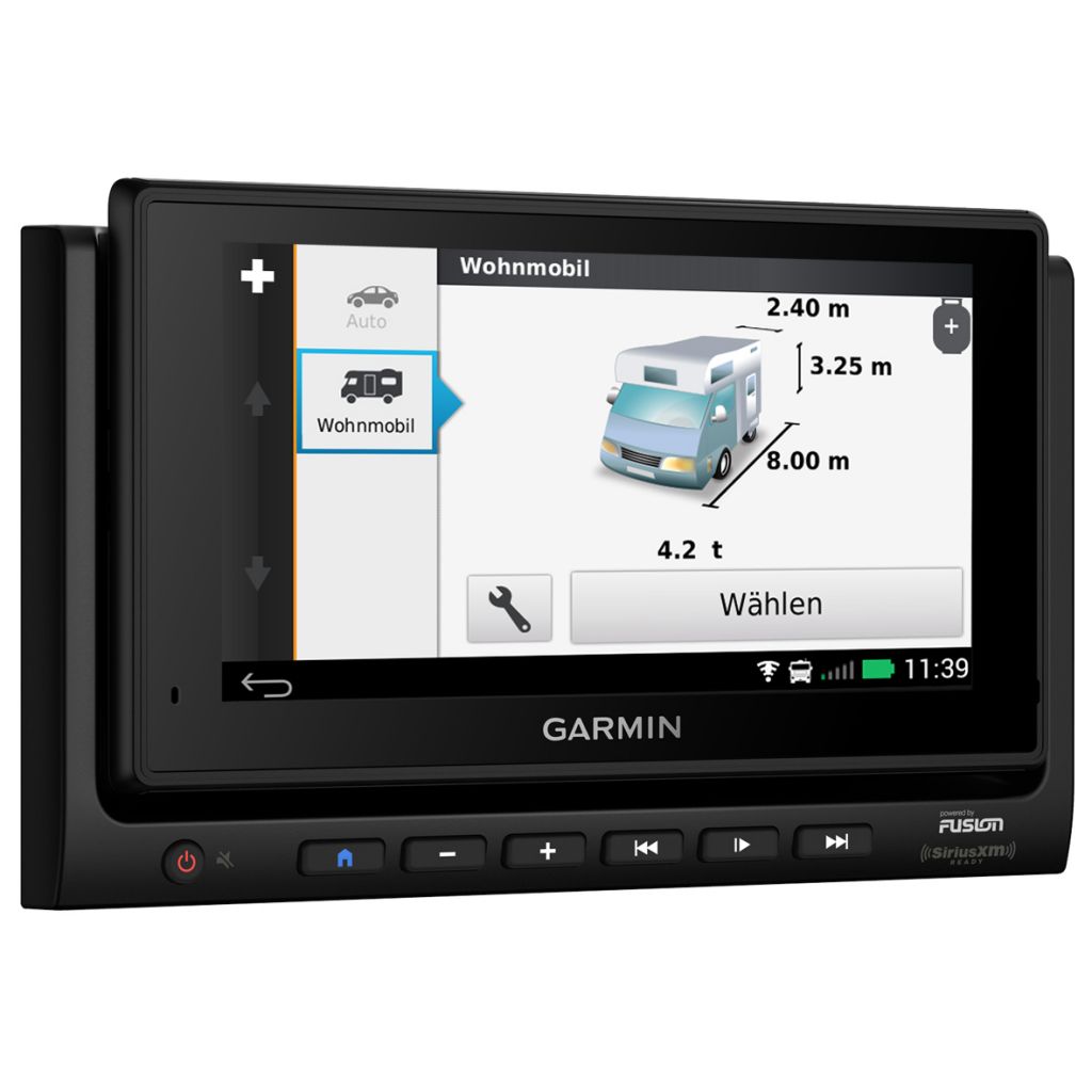 Garmin liefert eine optimierte Navigation, die auf die spezifischen Bedürfnisse von Freizeitfahrzeugen zugeschnitten ist. Das Radio mit Navigation bietet individuelle Routenführung für Freizeitfahrzeuge, Verzeichnisse mit Camping- und Stellplätzen, Höhenprofile sowie eine Freisprechfunktion und ist damit die ideale Lösung für Reisemobile. Über den Cinch Eingang kann eine Rückfahrkamera angeschlossen werden. Zudem ist das Gerät mit einer herausnehmbaren Tablet-Fernbedienung ausgestattet, über die der Benutzer das Entertainment-System von überall im Fahrzeug bedienen und steuern kann. Dazu wird im Mobilmodus ein WLAN-Netz zwischen Hauptgerät und Display aufgebaut. Ist das Display abgedockt, bietet es uneingeschränkten Zugriff auf die Android-Benutzeroberfläche, so dass Apps, Webbrowser, Reiseplaner und vieles mehr genutzt werden können.