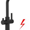 NIEDERDRUCK 3 Wege Wasserhahn Küchenarmatur Spültischmischer, Edelstahl Massiv aus Chirurgiestahl, mit 360° schwenkbarem Auslauf und abnehmbare 2 strahl Handbrause – Komplett mit Durchflussreduzierer auf 7liter pro min. um Ihren Niederdruck Boiler vor Beschädigungen zu schützen!