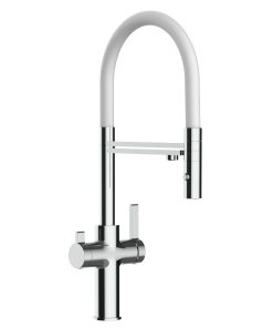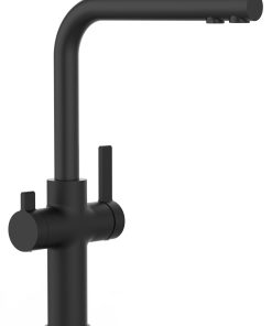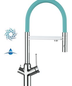 NIEDERDRUCK 3 Wege Wasserhahn Küchenarmatur Spültischmischer, Verchromt mit 360° schwenkbarem Auslauf und abnehmbare 2 strahl Handbrause – für Kalt-,Warm- und Filterwasser mit separatem Ventil am Hahn und separatem Auslauf für gefilterte Wasserentnahme