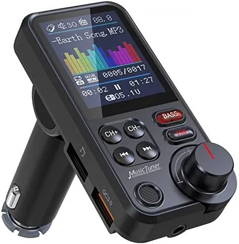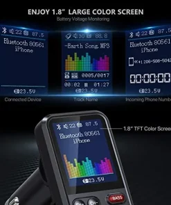 - 【Grosser Farbbildschirm】: Der Nulaxy KM30 bluetooth adapter auto verfügt über einen grösseren Farbbildschirm, und die Farbnotizen auf dem Bildschirm können mit der Musikwiedergabe schlagen, was Ihnen einen dynamischen Musikgenuss bietet. Ausserdem kann ein grösserer Farbbildschirm mehr Informationen für Ihre Fahrt liefern, wie z. B. Batteriespannung, Lautstärke, eingehende Telefonnummer, FM-Kanäle, Titelname und Song-Dauer usw.