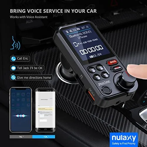 Nulaxy Bluetooth FM Transmitter Auto, starker Mikrofon Bluetooth Autoradio Adapter mit 1,8-Zoll-Farbbildschirm für Freisprechanrufe, unterstützt QC3.0-Aufladung, Höhen und Bass Sound Musikplayer-KM30