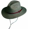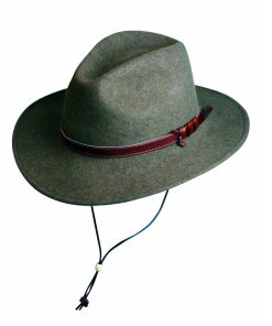 Formschöner und wetterfester Hut aus mit Wachsen und Ölen behandelter Baumwolle. Die Oilskin Behandlung macht den ‚Safari‘ extrem wetterfest und schützt zuverlässig vor Regen, Schnee und Sonne. Er verfügt über eine breite Krempe von 8 cm. Der verstellbare Kinnriemen, das Hutband und der Rand der Krempe sind aus Leder. Eine klassische Form und schön verarbeitet. Kurzum ein edles Design.