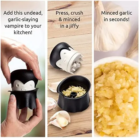 - Sensationelles Geschenk – Gracula zerkleinert den Knoblauch sofort! Ganz gleich, ob du auf der Suche nach lustigen Küchenhelfern, neuen Wohnideen oder einzigartigen Einweihungsgeschenken bist, dieser Artikel ist jeden Cent wert. Hergestellt aus robustem Kunststoff ist Gracula ein unsterbliches Küchenutensil. Vervollständige deine lustigen Küchenutensilien mit dieser Vampir-Knoblauchpresse! Versenke deine Zähne mithilfe dieses fantastischen Freundes in leckere Mahlzeiten!