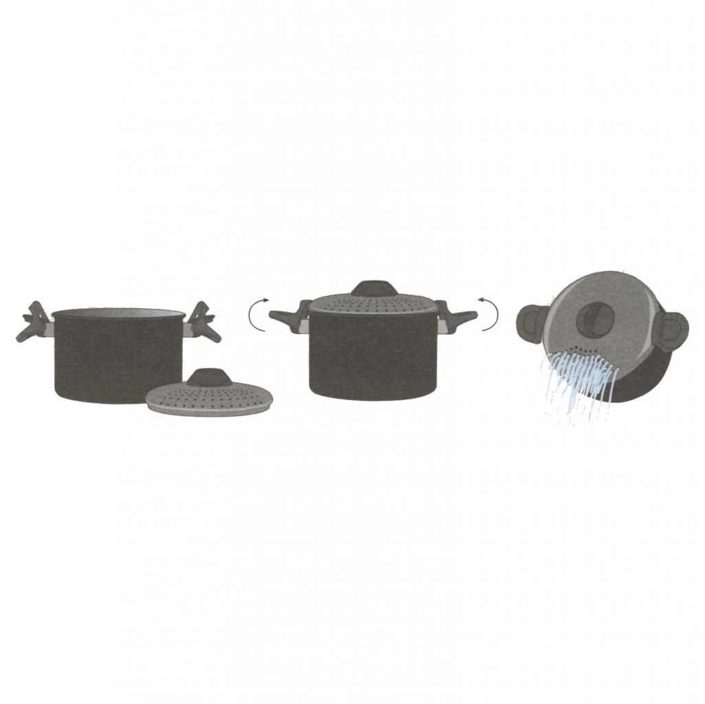 Der Gli Pastatopf ist nicht nur ideal für die Zubereitung von Pasta, sondern auch für Gemüse! Der Topf besitzt geniale Griffe. Diese sind so konzipiert, dass der Deckel aus Edelstahl zum Abgießen des Kochwassers gedreht und arretiert werden kann. So ist ein zusätzliches Sieb nicht mehr notwendig.