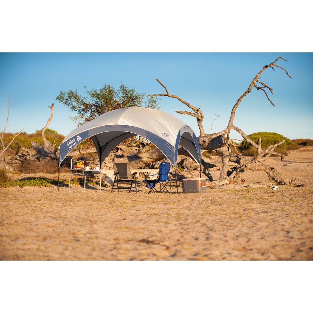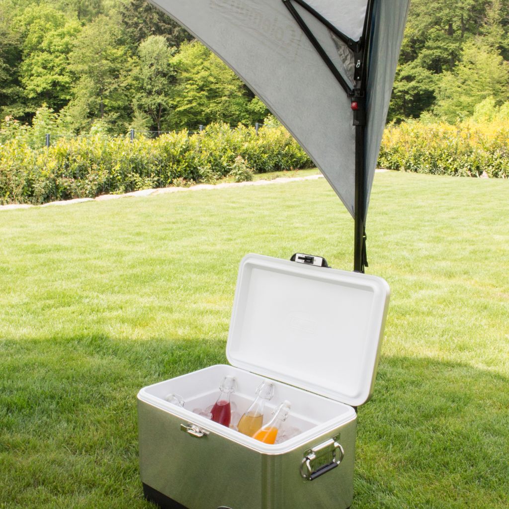 Das FastPitch™ Shelter ist in ca. 5 Minuten aufgebaut und bietet Ihnen einen zuverlässigen Sonnenschutz für Familie und Freunde. Dank der UV Guard™ Technologie und der zusätzlichen Innenbeschichtung werden bis zu 99,9 % der UV-Strahlen abgehalten und die Temperatur unterhalb des Shelters um bis zu 2,5 °C reduziert. Mit einem einfachen „Klick“ rasten die Beine des Shelters beim ein- oder ausziehen auf einer der vormontierten Positionen ein, sodass sie die gewünschte Höhe im Handumdrehen einstellen können. Das FastPitch™ Shelter ist der perfekte Sonnenschutz für Ihren Garten, die Terrasse, dem Kinderplanschbecken, Sandkasten und beim nächsten großen Familienfest. Lieferumfang: Zelthaut, Stahlgestänge und Abspannmaterial.