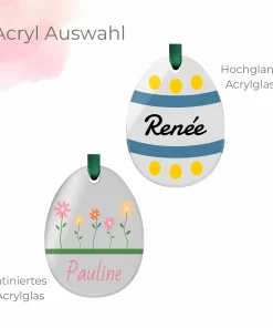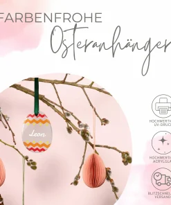 Unsere personalisierten Osteranhänger aus Acrylglas sind die perfekte Osterdeko zum Aufhängen – sie sind individuell personalisierbar und können dank Ihrer handlichen Größe an nahezu jedem Platz aufgehängt werden. Da die Anhänger aus Acrylglas sogar wetterfest sind, eignen sie sich auch hervorragend für den Garten draußen.