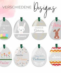 Im Konfigurator kannst Du Dein Osterei ganz individuell selbst gestalten. So lässt sich z.B. für alle Kinder & jedes Familienmitglied ein eigener Oster Anhänger gestalten. Hierzu kannst Du deinen eigenen Wunschtext, z.B. den Namen oder eine Botschaft wie „frohe Ostern“ und eine passende Schriftart sowie Schriftfarbe auswählen. Des Weiteren steht Dir eine große Auswahl an liebevoll gestalteten Motiven zur Verfügung. Zusätzlich kannst Du zwischen einem kleinen oder einem großen Osteranhänger wählen. Des Weiteren stehen Dir verschiedene Bandfarben zur Auswahl.