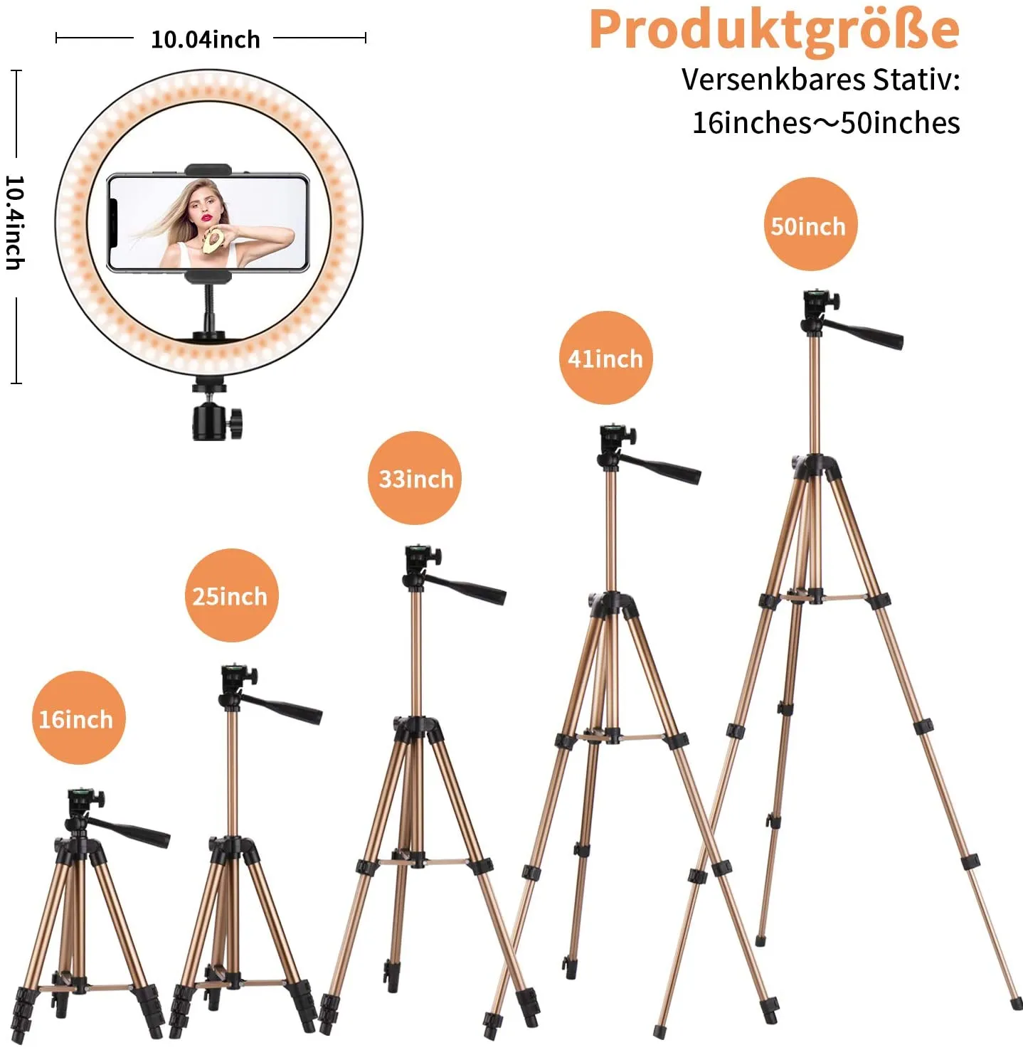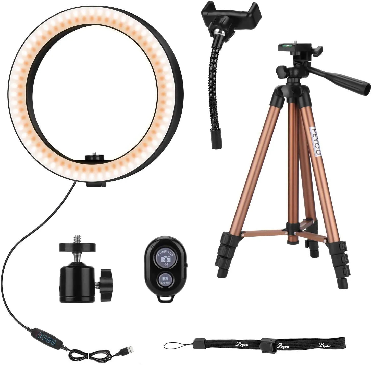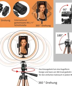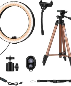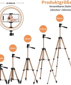 PEYOU 10 „Selfie Ringlicht mit ausziehbarem Stativ (50“) und flexiblem Telefonhalter
