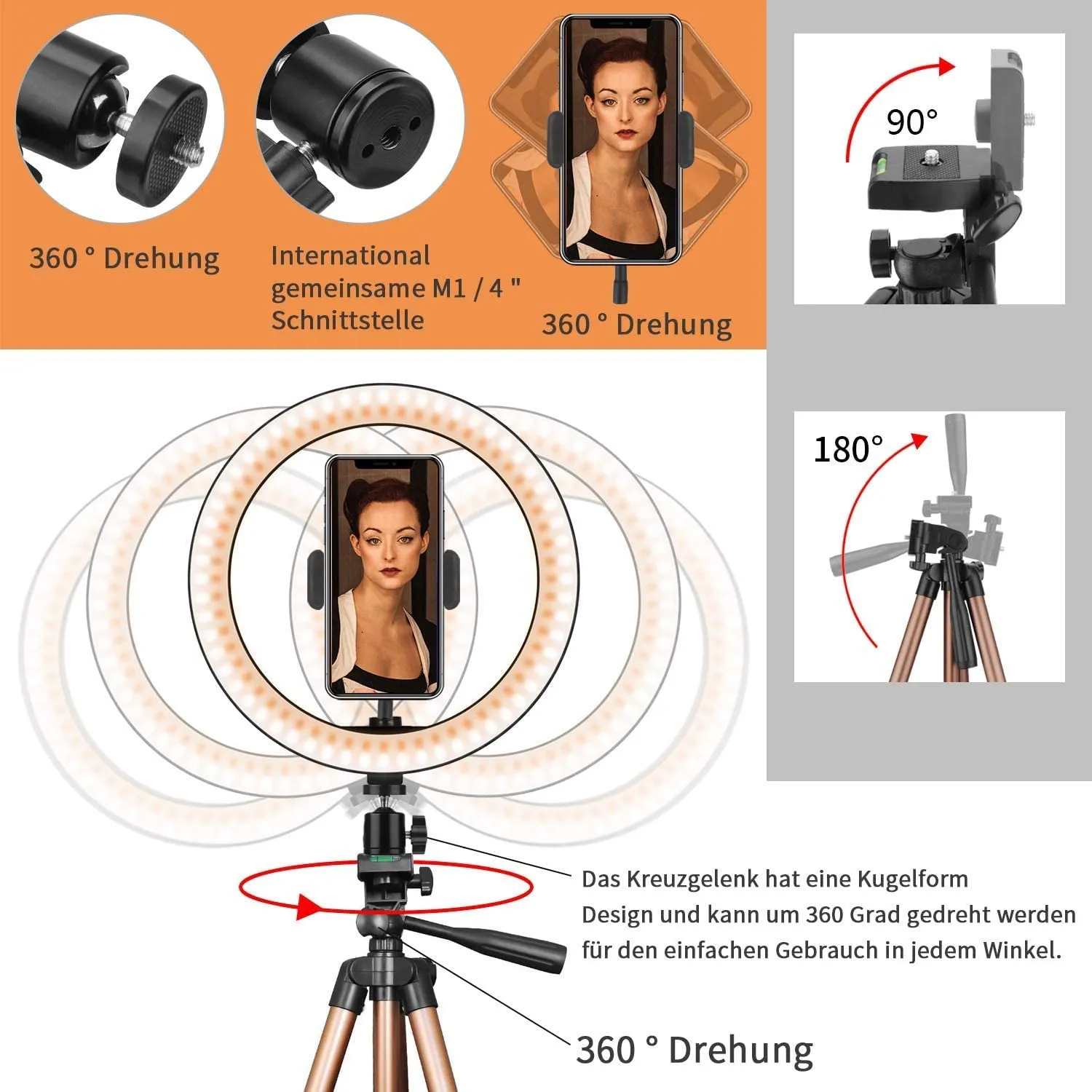 Telefonhalterung: Einfach einzurichten und um 360 Grad verstellbar (vertikal und horizontal)