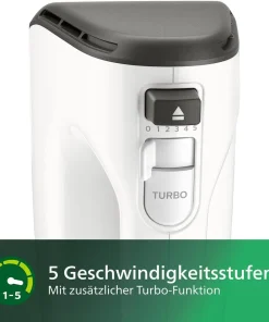 - Der Philips Handmixer hilft Ihnen beim Zubereiten leckerer Kuchen, Pasteten und Brote für die ganze Familie. Mit dem leistungsstarken 450 Watt Motor, 5 Geschwindigkeitsstufen und Turbofunktion sowie Quirlen und Knethaken aus Edelstahl wird auch der schwierigste Teig zum Kinderspiel.