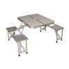 Picknickzeit? Mit dem extrem stabilen Picknickset sind Sie für jeden Campingurlaub, jede Sportveranstaltung oder Party gerüstet. Der kompakte Klapptisch mit 2 Sitzbänken für vier Personen ist immer dabei. Ideal für Garten, Strand, Camping oder Kinderparty. Die Sitze sind aus Polypropylen mit einem Korb-Webmuster in der gleichen Farbe wie die ABS-Kunststofftischplatte geformt. Der Rahmen ist aus Aluminiumlegierung für eine lange Lebensdauer. Der Picknicktisch Comfort ist ideal für Outdoor- oder Innenbereich. Der Tisch hat in der Mitte ein Loch um einen Sonnenschirm aufzunehmen (Lieferung erfolgt ohne Schirm).