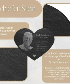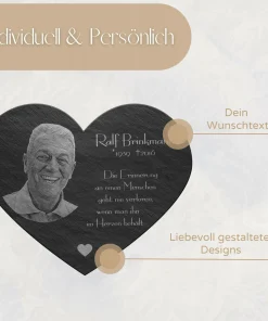Es ist nie einfach einen Menschen loszulassen, der einem unendlich viel bedeutet hat und den man für immer in seiner Erinnerung behalten wird. Halte all die wundervollen Momente und gefühlvollen Augenblicke, die Du mit dieser Person verbindest, auf einem stilvollen Grabstein aus Premium Schiefer fest. Die ca. 4-7 mm starke Schieferplatte ist ideal, um ein Erinnerungsstück für die Ewigkeit zu gestalten. Klassisch und dezent, aber voller Liebe und Emotionen – das kennzeichnet dein Gedenkherz mit Gravur.