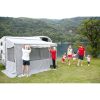 Die kompakte und leichte Privacy Lösung für die Caravanstore und F35 Pro Markise. Einfache und schnelle Anbringung. Die Seitenfenster, welche geöffnet werden können, sind mit Moskitonetzen versehen. Das Vorderteil, mit aufrollbarem Fenster und Moskitonetz, wird einfach in die Kederschiene der Rolle eingezogen und mittels Reißverschlüssen ganz einfach mit den Seitenteilen verbunden.