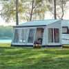 Lieferumfang: Frontseite mit aufrollbarem Fenster, Moskitonetz und Tür, welche sowohl rechts als auch links angebracht werden kann. 2 Seitenwände mit aufrollbaren Fenstern und Moskitonetz. Vorhänge für alle Fenster, Befestigungssystem Fast-Clip, Mega Bag.