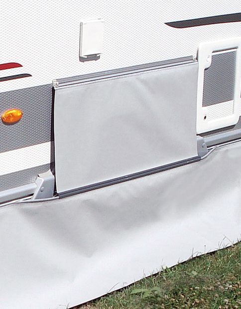 Länge 1,5 m, mit Verbindungsprofil zur Nutzung mit einem durchgehenden Caravankeller. Gefertigt aus winterfestem PVC-Planenmaterial, inkl. angeschweißtem Textilkeder.