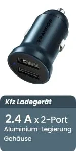 - Beide Anschlüsse können bis zu 24 W liefern, wobei jeder Anschluss 2,4 A Ladeleistung bietet.