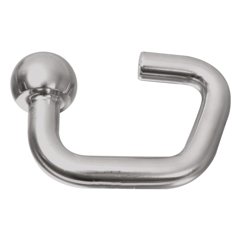 - Der Angriffspunkt des Hakens ist so angeordnet, dass er mit dem Mittelpunkt der Kugel eine Ebene bildet. Eine ungünstige Hebelwirkung an der Kupplung des Anhängers wird hierdurch verhindert.