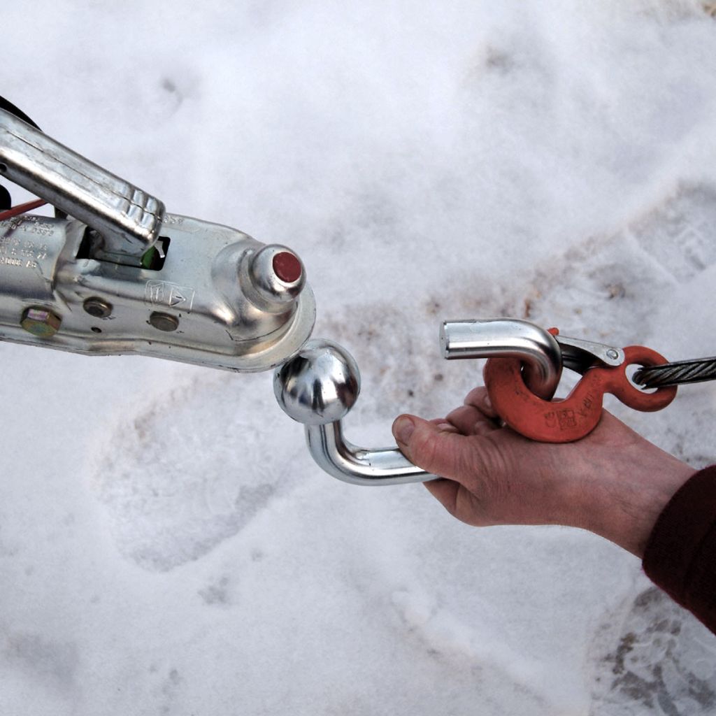 Mit der Rangierhilfe und einem Abschleppseil als Verbindung zwischen Zugfahrzeug und Anhänger wird es ermöglicht, das Zugfahrzeug auf festen Untergrund zu stellen und somit den Anhänger zu bergen. Die Rangierhilfe ist nicht zum Abschleppen im öffentlichen Straßenverkehr zugelassen. Kugel: ø 50 mm. Material: Stahl, verzinkt. Maximal zulässige Zuglast: 1,0 t.