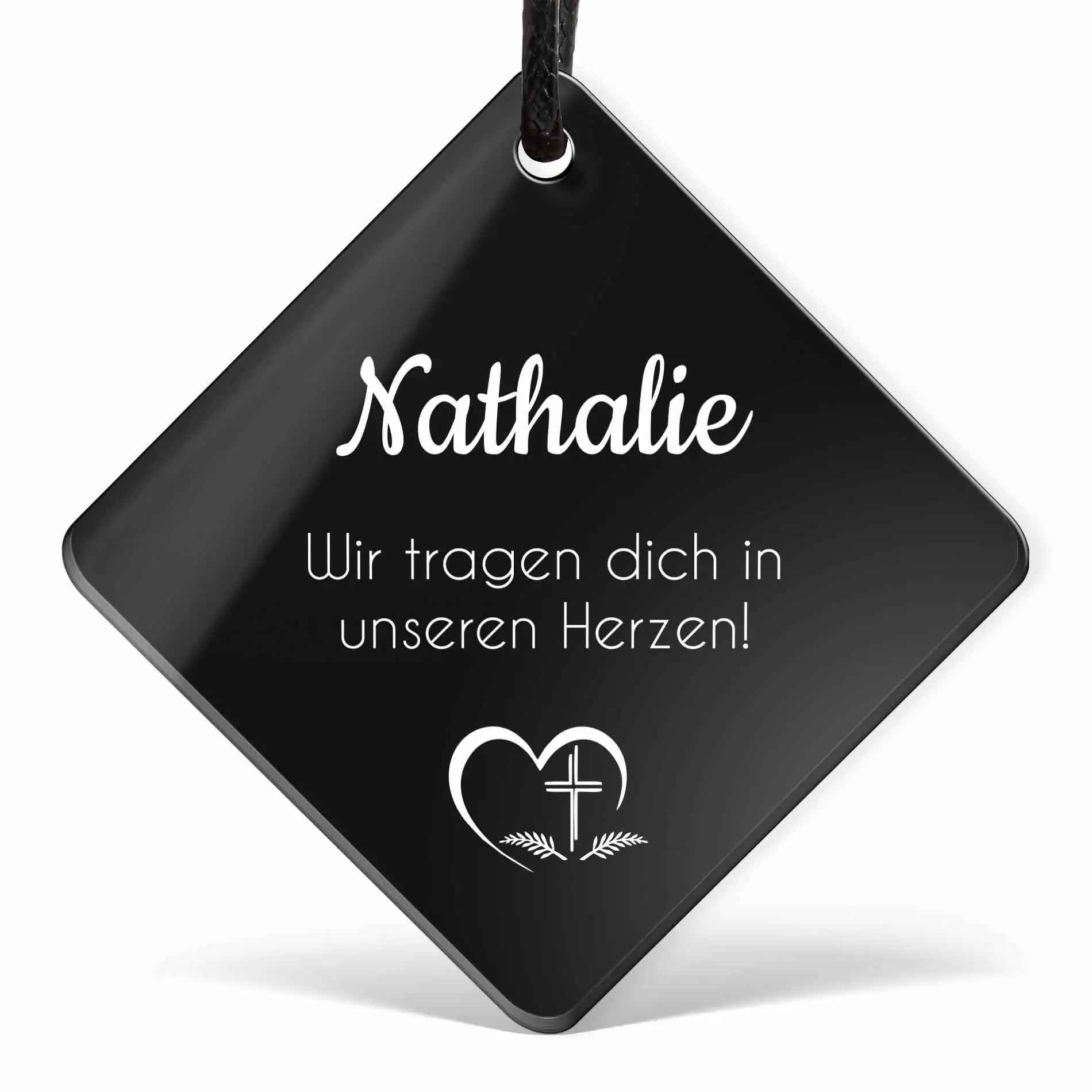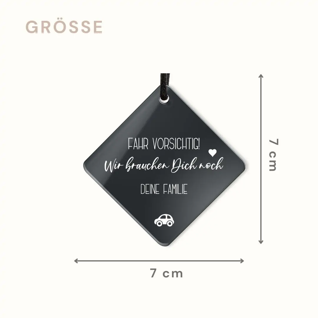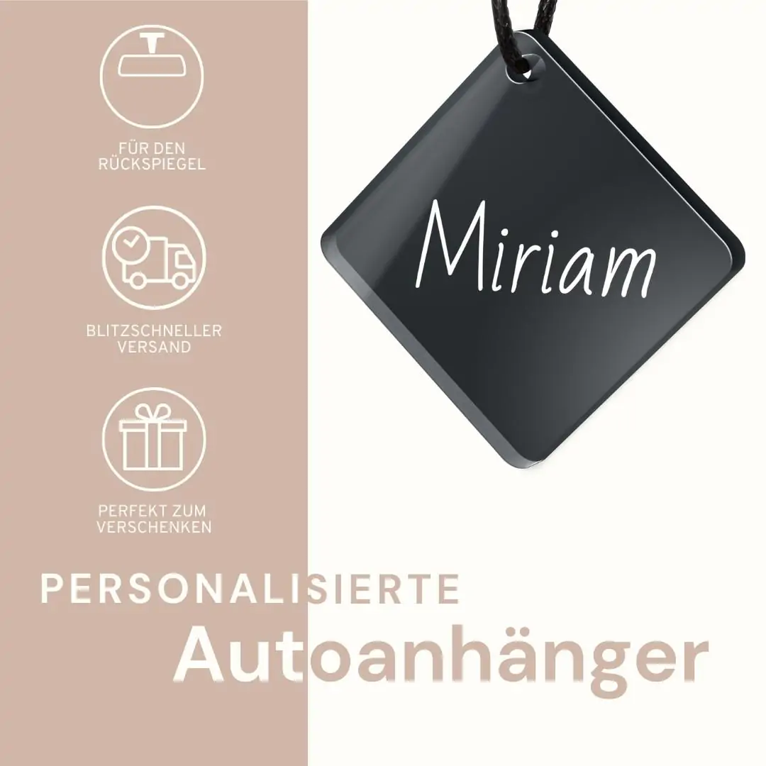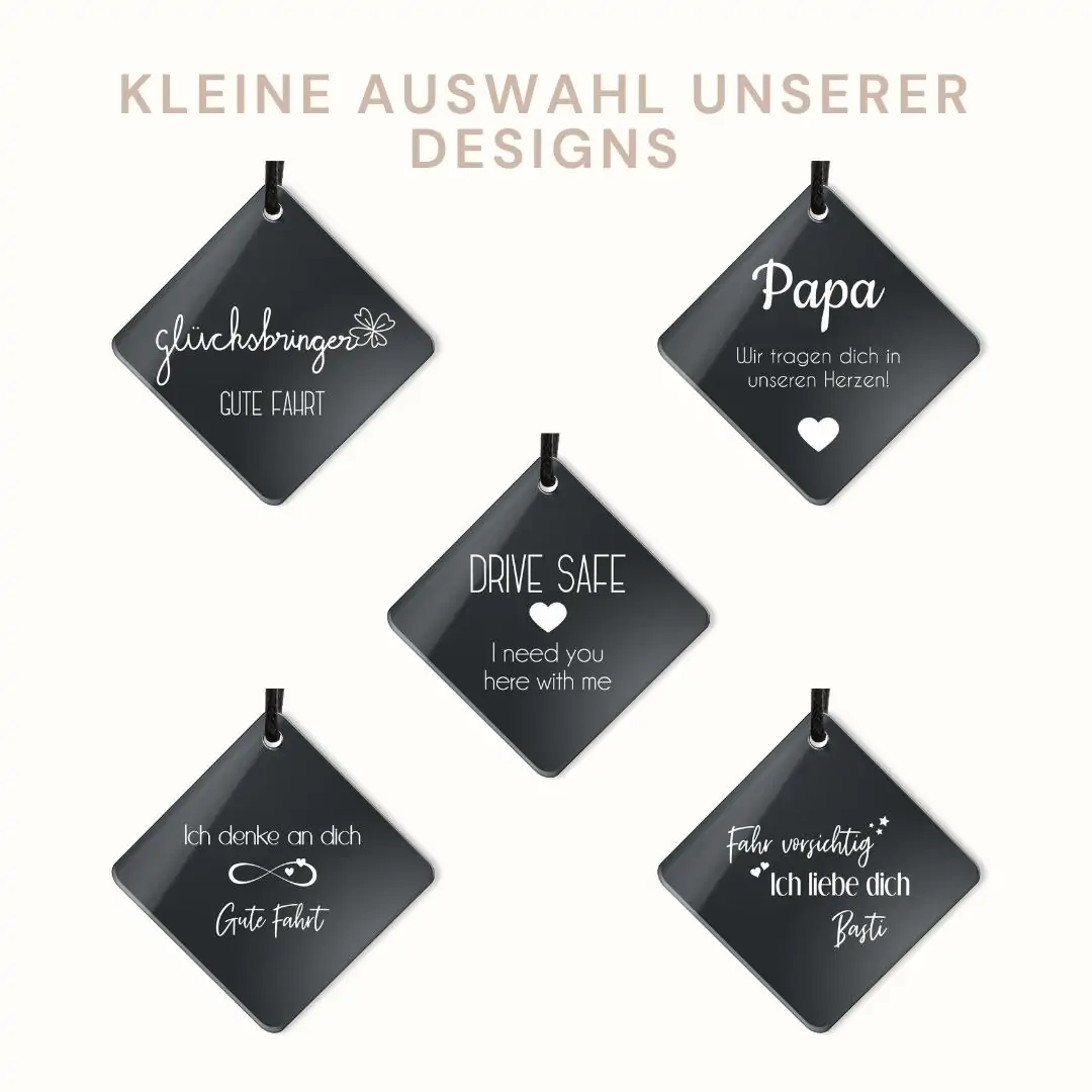 Gestalte einen wunderschönen, personalisierten Auto Anhänger aus Acrylglas mit Gravur als Erinnerung. Das Acrylglas überzeugt mit einer edel glänzenden Oberfläche, welches gerade im Sonnenlicht schöne Lichteffekte aufweist. Die weiße Gravur steht im schönen harmonischen Kontrast. Wähle zwischen vielen verschiedenen Motiven und Schriftarten. Zusätzlich kannst Du dir eine passende Farbe auswählen. Eine passende Kordel ist im Lieferumfang enthalten.