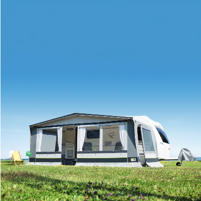 Das attraktive 5-teilige Modell lässt in Bezug auf Ausstattung und Komfort keine Wünsche offen. Die Fensterklappen in der Vorderwand schützen vor unliebsamen Blicken. Sturmverspannungen in der Vorderwand ermöglichen eine sichere Verspannung.