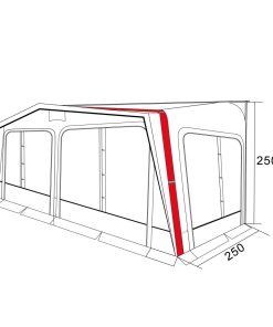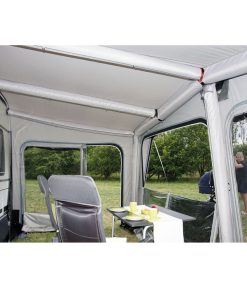 Das volleingezogene Vorzelt mit Advanced Air System® (AAS) ist der ideale Begleiter für alle Saisoncamper. Die Luftkammern werden über einen einzigen Punkt mit Luft befüllt, somit ist ein einfacher und schneller Aufbau des Vorzelts gegeben. Eine Dauerventilation sowie reflektierende Abspanngurte runden das Vorzelt ab. Die innenliegenden Fensterabdeckungen sind mit Reißverschluss versehen. Die Ecken des Vorzeltes an der Anschlussseite an den Wohnwagen sind mit Vario-Ecken ausgerüstet und sorgen somit für eine bessere Passform des Vorzeltes.