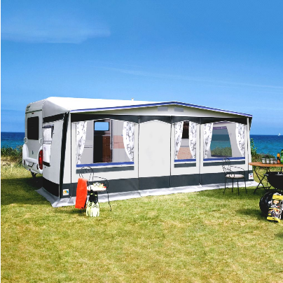 7-teiliges Vorzelt für alle, die mehr wollen. Außenliegender Erdstreifen, innen abspannbar, Sturmlaschen in der Vorderwand. Auch als Sonnendach nutzbar, da Seitenwände und Vorderwand herausnehmbar sind. Abgedeckte Reißverschlüsse. Passend auch für Fahrzeuge mit aerodynamischer Bugform.
