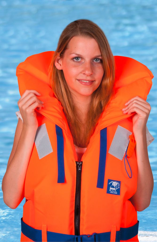 Die bewährte Feststoff-Rettungsweste ist speziell für die Verwendung auf Binnengewässern ausgelegt und gewährleistet dank des Sicherheitskragens eine ohnmachtsichere Rückenlage. Das heißt, dass man automatisch auf den Rücken gedreht wird, falls man das Bewusstsein verlieren sollte. Der verstellbare Beingurt, Reflexionsstreifen und eine Pfeife sorgen für weitere Sicherheit.