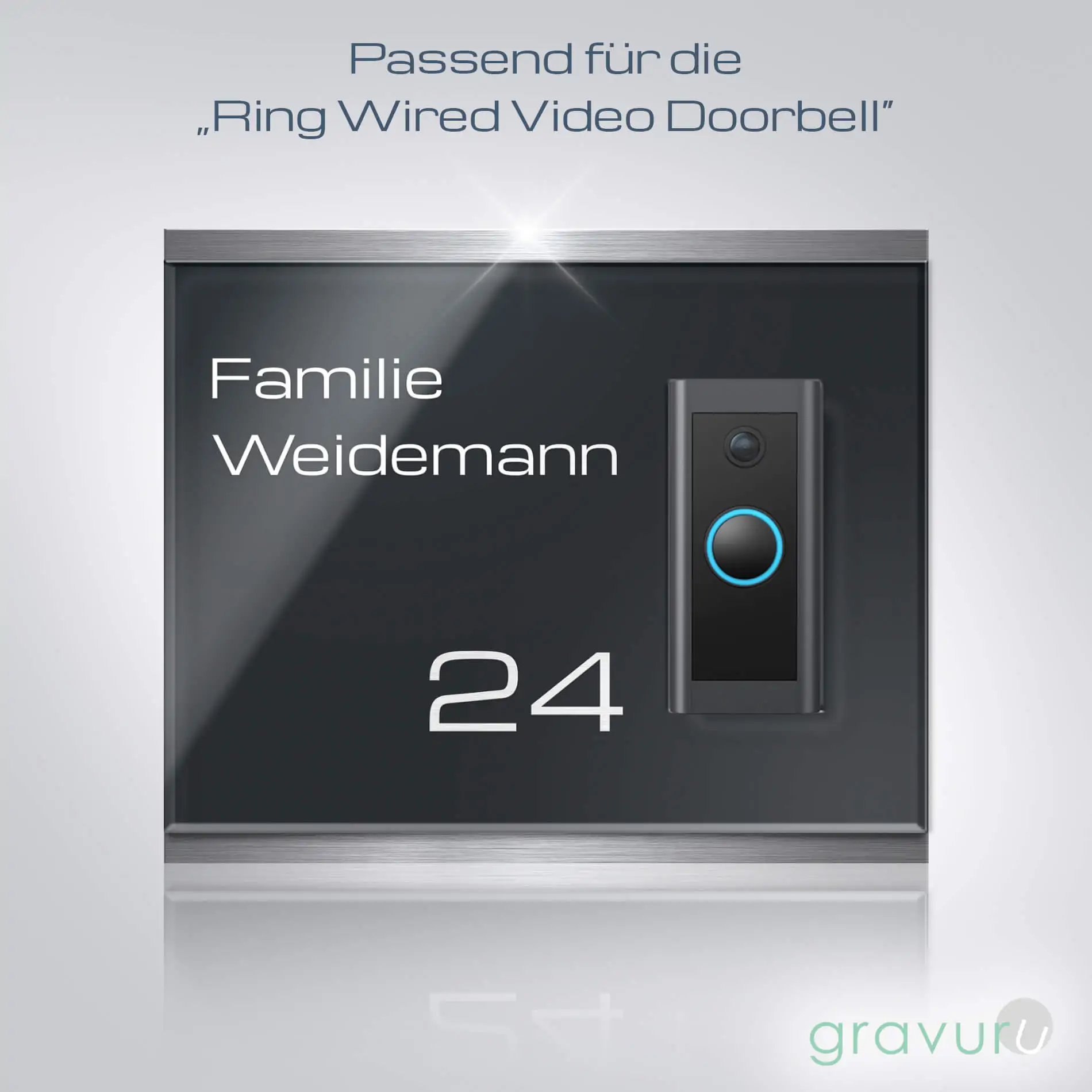 Du suchst eine stilvolle Möglichkeit um Deine Funkklingel im Hauseingang zu befestigen? Gestalte eine Klingelplatte für Deine Funkklingel und personalisiere sie genau nach Deinen Wünschen. Unsere hochwertigen Funkklingelschilder aus massivem V2A Edelstahl und hochglänzendem Acrylglas machen Deine Doorbell Türklingel zu einem echten Hingucker im Eingangsbereich.