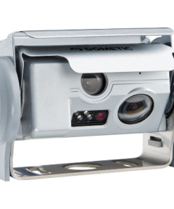 Die bei diesen Highend-Systemen zum Einsatz kommende Kamera CAM 44 verfügt über 2 getrennte Kameramodule: ein Weitwinkelobjektiv mit 140° Blickwinkel für den Nahbereich und ein Teleobjektiv mit 50° Blickwinkel für die Fernsicht. Separat angeordnete IR-LEDs sorgen für eine sehr gute Nachtsicht. Die motorbetriebene Kameraabdeckung schützt die Objektive während der Fahrt vor Schmutz oder Beschädigungen. Im Rückfahrmodus sorgen 3 Abstandslinien für zusätzliche Sicherheit. Ausgestattet mit einem Mikrofon lassen sich über den monitorinternen Lautsprecher akustische Anweisungen ausgeben.