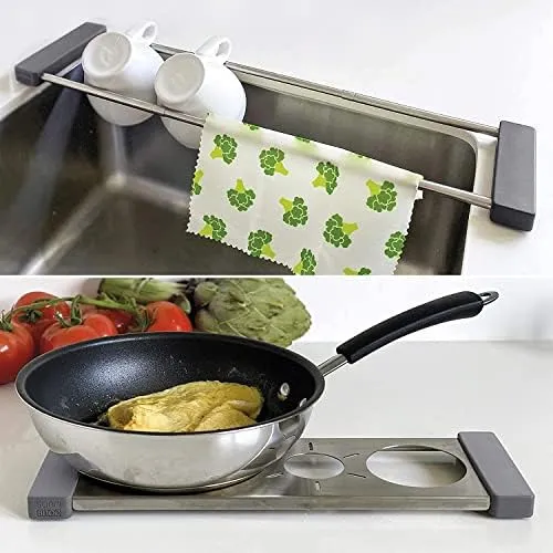 Wenn über der Spüle nicht gebraucht, wird drip.it ein hitzebeständiger Untersetzer (bis zu 220°C). Ideal für kleine Küchen, tiny houses oder Camping.