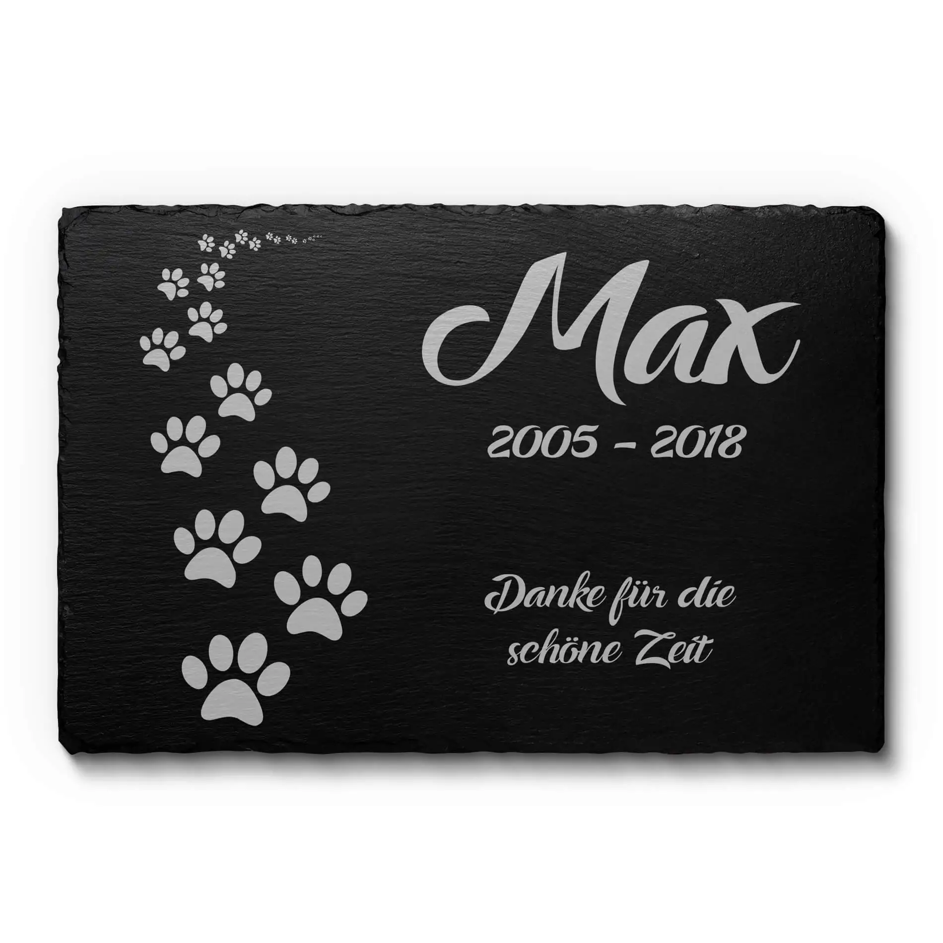 Schiefer Gedenktafel „Pfoten“ 30×20 cm mit Gravur