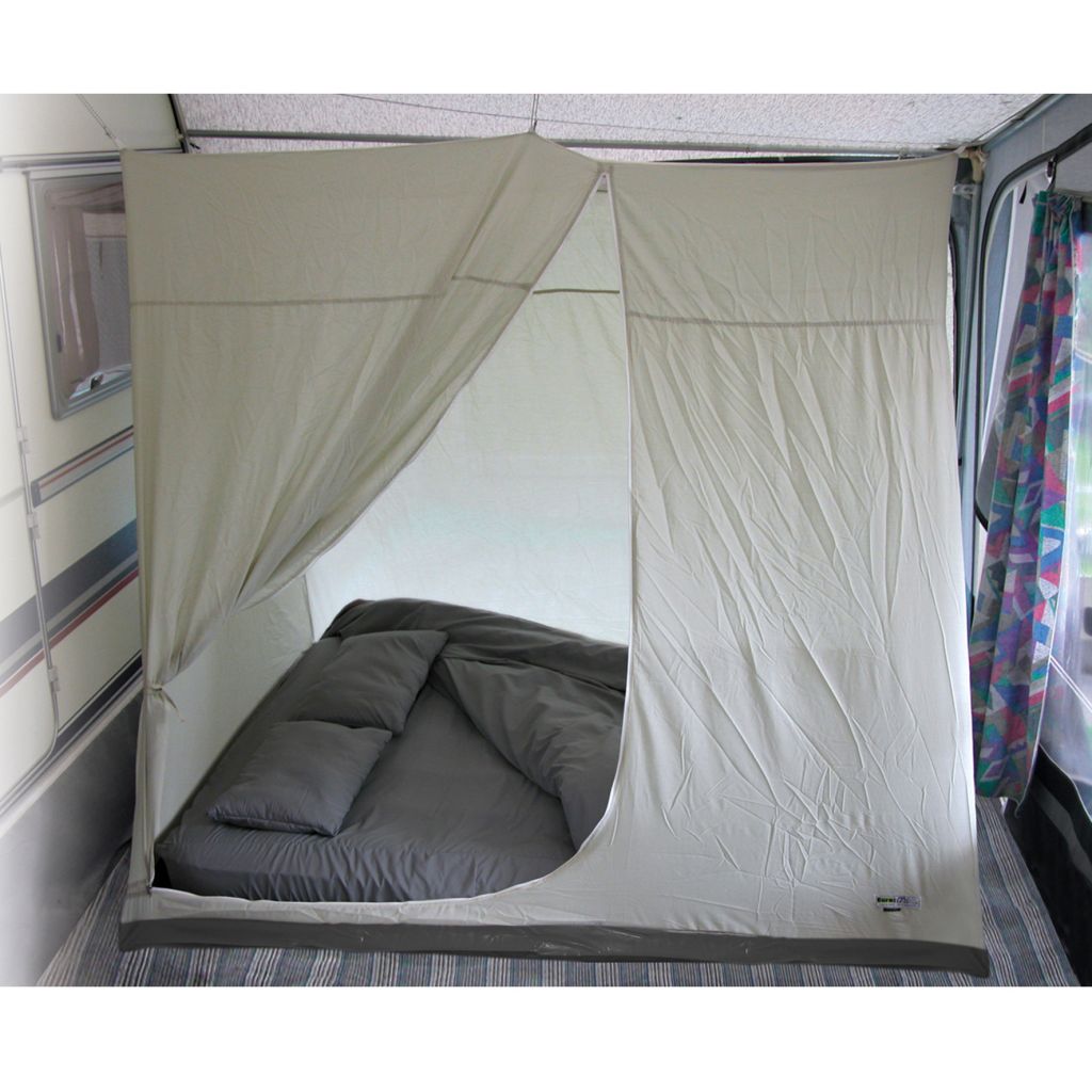Ungestört schlafen können Sie jetzt mit dieser komfortablen Schlafkabine. Sie wird einfach in das vorhandene Vorzeltgestänge eingehängt. Material: 65 % Polyester, 35 % Baumwolle; Bodenwanne: PVC
