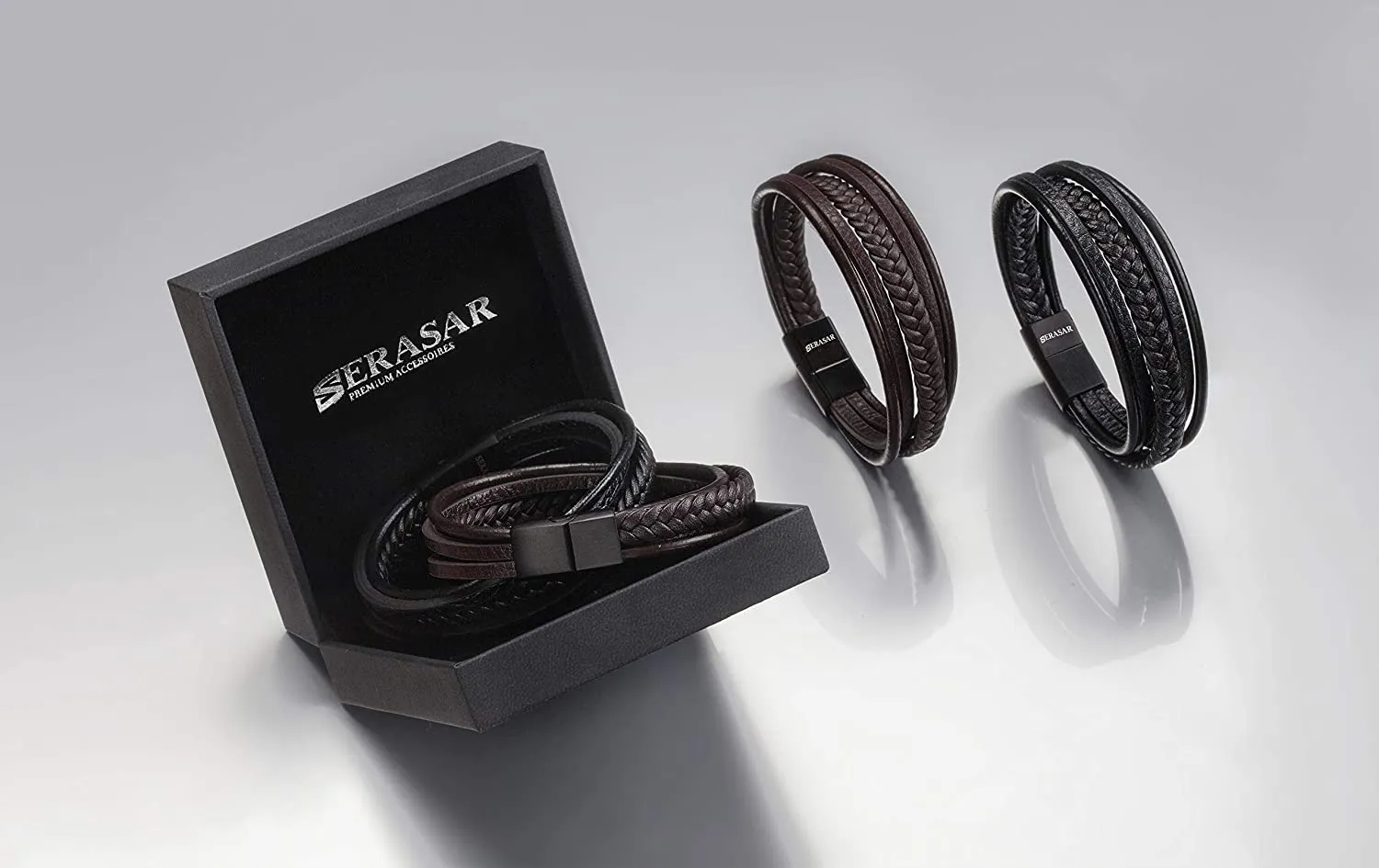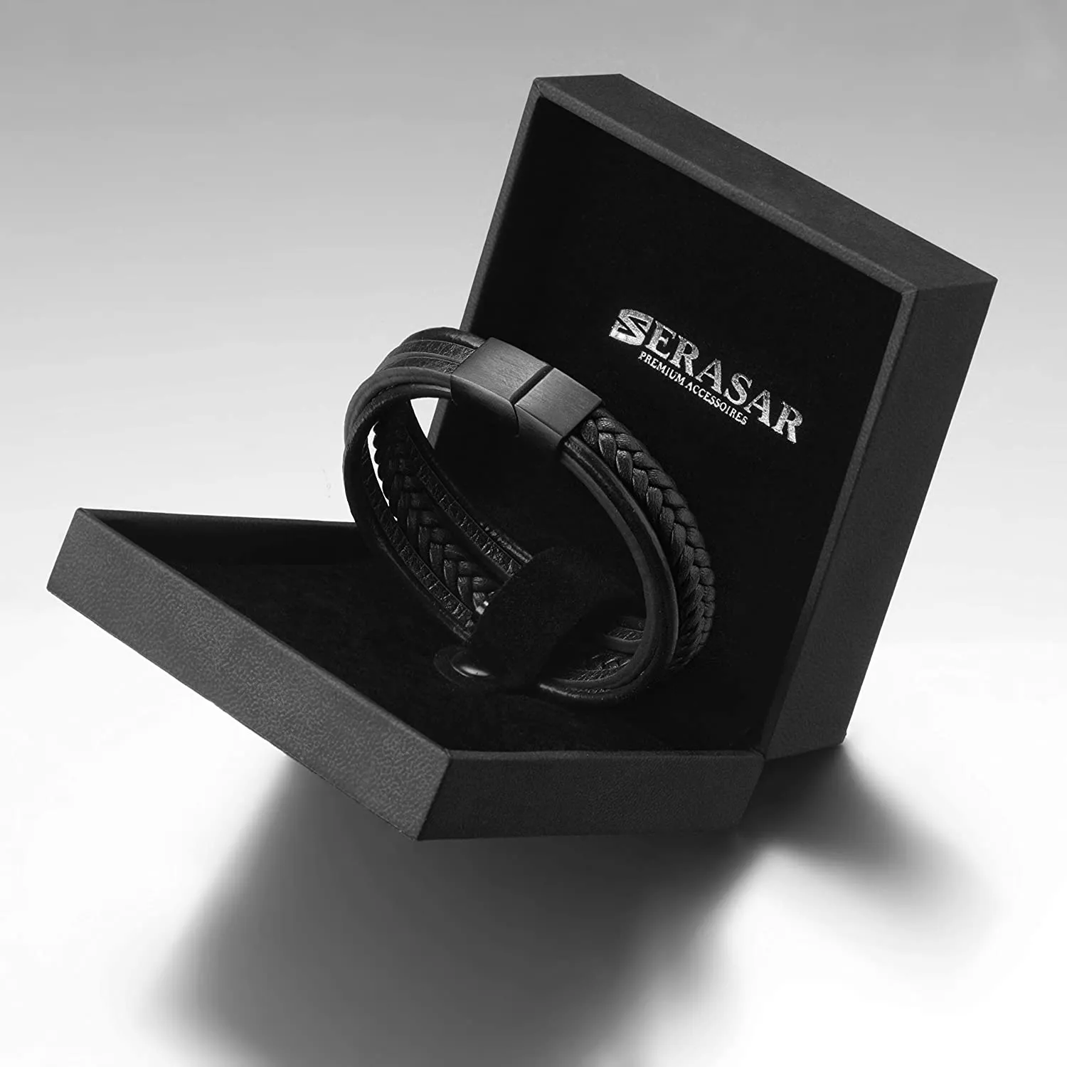 SERASAR Armband Herren Leder , Herren Armband Männer, Armband Leder Armreif Herren Lederband Herrenarmreif Armschmuck Leder Schmuck Herrenschmuck Flecht, Armband GeschenkIdee für Ihn