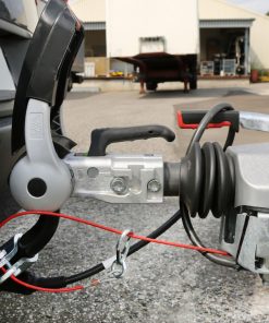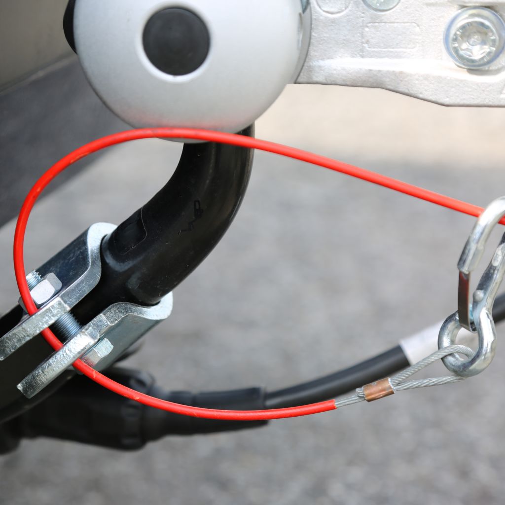 Die Sicherungsschelle wird auf die Anhängerzugvorrichtung des Zugfahrzeuges montiert.