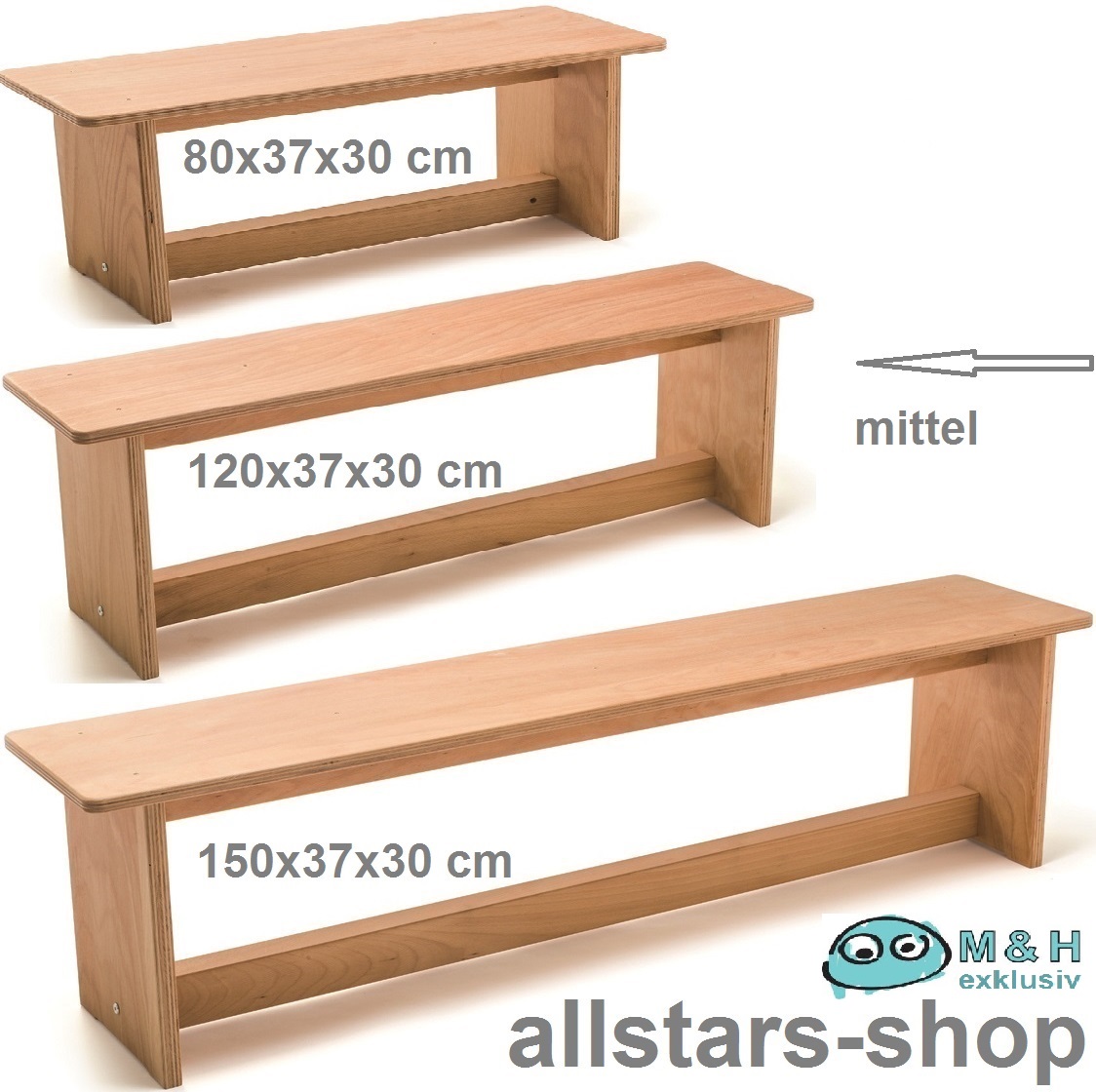 Diese stabile Kinderbank ca. 120 x 37 x 30 cm aus Buchenmassivholz übersteht mehrere Kindergarten-Generationen,