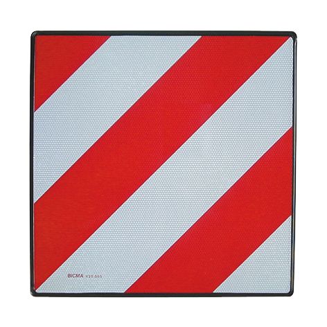 Jede überstehende Ladung muss mit einer rot-weiß schraffierten Warntafel gekennzeichnet werden. Im Unterschied zur Warntafel für Italien hat die Tafel für Spanien zusätzlich einen schwarzen Rand.