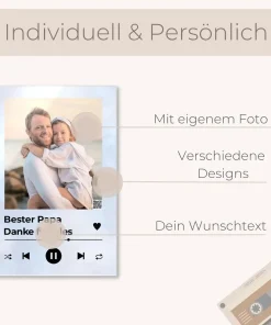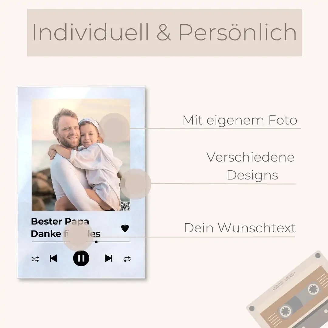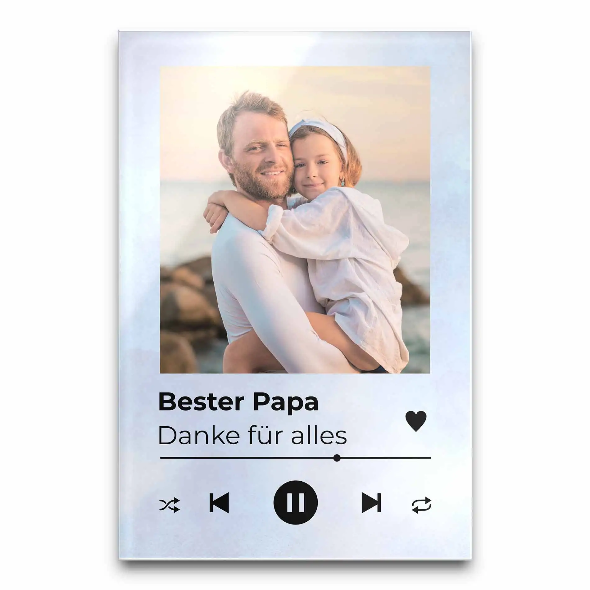 Spotify Glas Bild mit Deinem Foto, Musik Titel o. Wunschtext – ab 15 x 20 cm