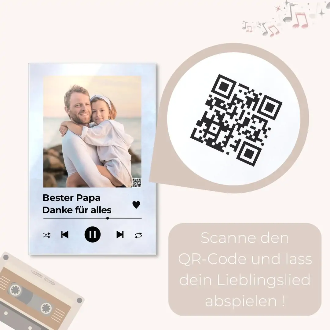 Auf dem Song Cover Acrylglasbild kannst Du nicht nur Dein Lieblingsfoto sondern auch Deinen Lieblingssong oder eine andere persönliche Widmung verewigen. Zusätzlich hast Du die Wahl zwischen vielen verschiedenen Farben und Designs. Abrunden kannst Du Dein Spotify Glas mit einem individuellen QR-Code, der auf Deinen Lieblingssong verweist und diesen beim Einscannen sofort abspielt. Personalisiere die Spotify Tafel indem Du im Konfigurator ein Foto Deiner Wahl hochlädst und einen Musik-Titel & Interpreten, Namen oder einen anderen Wunsch-Text in die Eingabefelder einträgst.