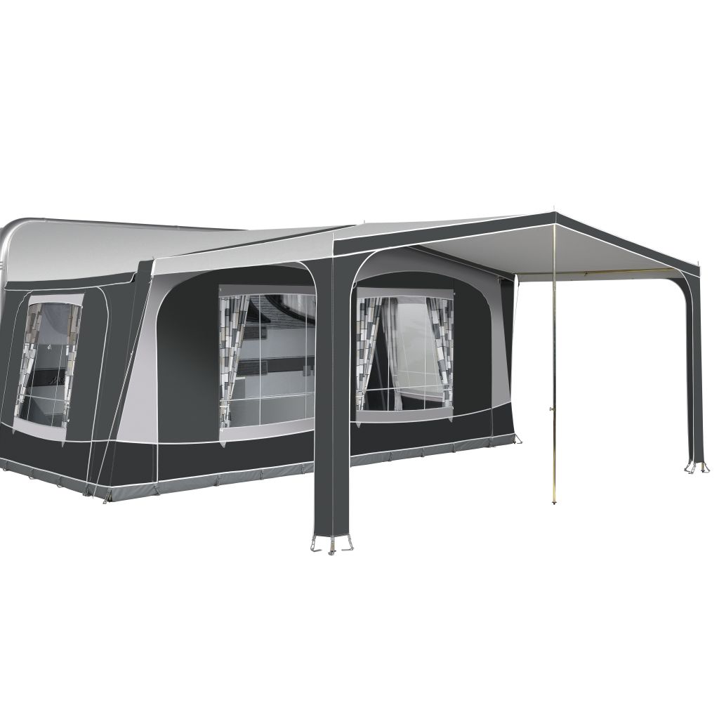 Erweitern Sie Ihr Reisevorzelt Octavia Air um ein Sonnendach und sorgen sie so für noch mehr Platz im Schatten oder bei Regen im Trockenen. Es wird duch ein Kunststoff-Verbindungsprofil am Vorzelt befestigt. Aluminiumgestänge im Lieferumfang enthalten. Material: TenCate All Season 70 % PES und 30 % PVA mit außenseitiger Beschichtung.