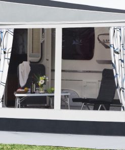 Nutzen Sie es als Sonnendach an Ihrem Vorzelt oder ziehen Sie es in die Kederschiene Ihres Wohnwagens ein. Bei Einsatz als Sonnendach vor Ihrem Vorzelt schlagen Sie die mitgelieferten Kunststoff-Ösen selbst an den entsprechenden Stellen ein. Diese Stellen sind mit PVC verstärkt. Vorne sind drei verstärkte Ösen passend einzuschlagen. In der Frontblende gibt es 2 Hohlsäume, damit man zusätzliches Gestänge montieren kann. An der Kederseite befindet sich rechts und links jeweils ein Abspanndreieck, damit sich das Sonnendach nicht verschieben bzw. abheben kann. Sie benötigen kein zusätzliches Werkzeug.