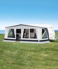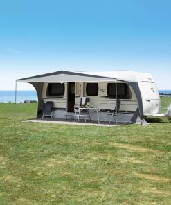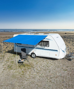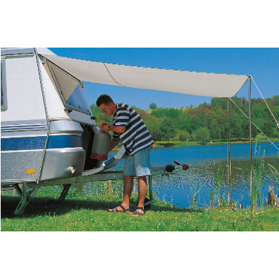 Das vielseitige Sonnendach Playa dient nicht nur als angenehmer Schattenspender vor dem Wohnwagen, sondern auch als Überdachung für den Gasflaschenkasten und die Deichsel am Bug. Aber auch am Heck des Wohnwagens als Carport leistet Ihnen dieses Vordach gute Dienste. Wählen Sie zwischen den 2 attraktiven Farben grau und blau.