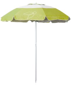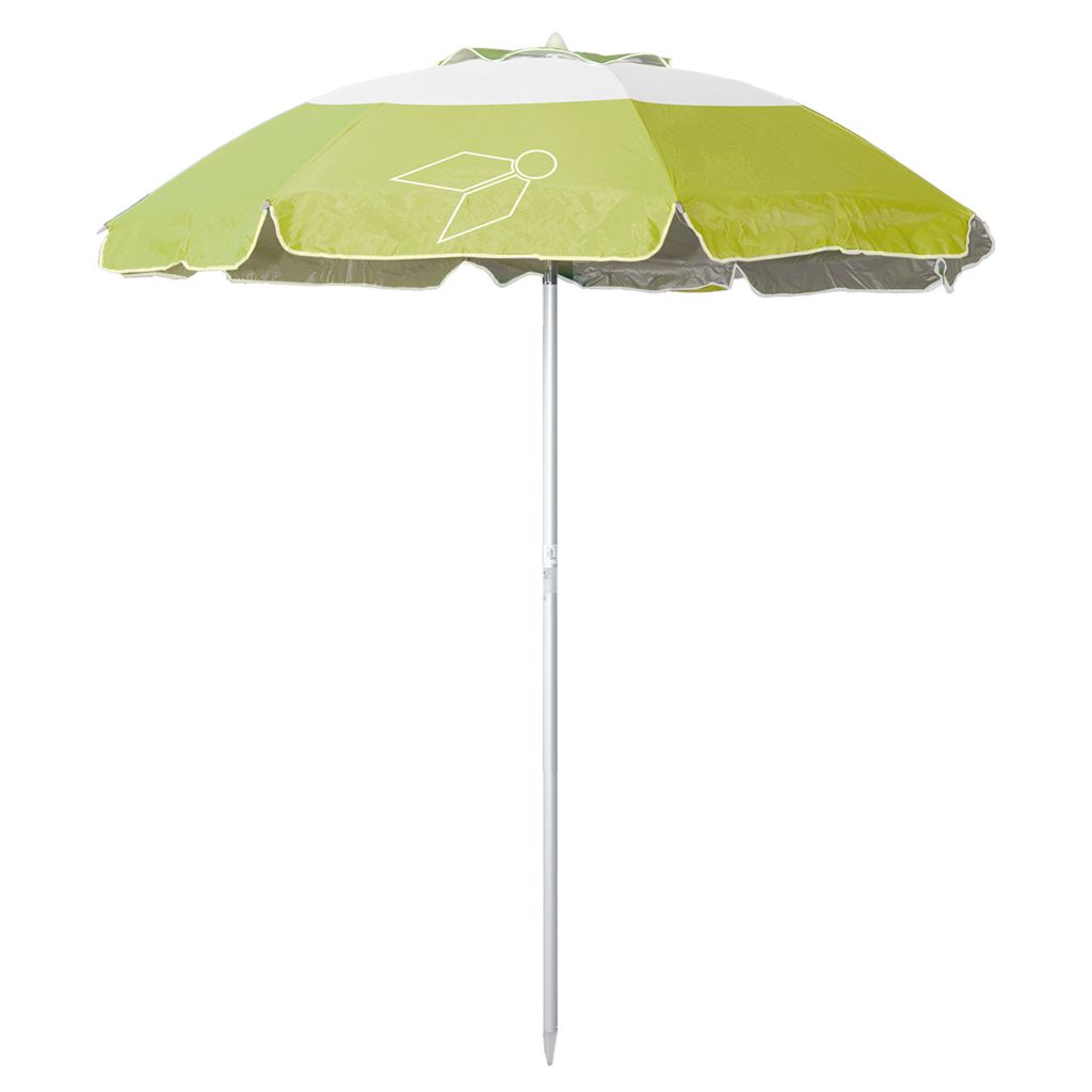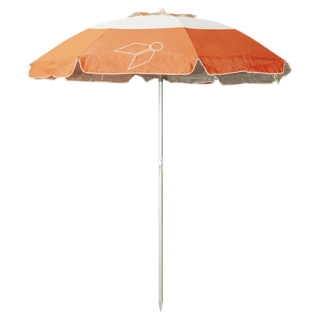 Hochwertiger Sonnenschirm für Garten und Strand. Schirmmaterial aus hochwertigem 100 % Polyester mit alubeschichteter Innenseite. Der robuste Alustock ø 32 mm ist mit einem praktischen Alu-Knicker versehen. Mit Windauslass und Tragetasche. Farbe: hellblau, grün, orange sortiert.