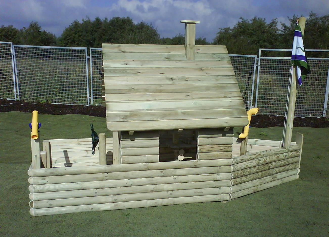 Diese sehr stabile Spielschiffkonstruktion ist gefertigt aus widerstandfähigem, kesseldruckimprägniertem, chromfreiem Kiefernholz. Das gut ausgetrocknete Kiefernholz zeichnet sich aus durch eine hervorragende Widerstandsfähigkeit und eignet sich daher gut zur Verarbeitung für Kindermöbel, Kinderspielgeräte und Kinderspieltürme. Das hier angebotene Spielgerät Spielschiff Niklas, bietet sich an zum Klettern, Krabbeln, Verstecken und das kreative Spielen. Es fördert so den Gemeinschaftssinn der Kinder. Die stabile Kiefernholzkonstruktion ist dafür besonders vorteilhaft. Das Schiff ist wegen der Elementbauweise leicht aufzubauen. Und nun heißt es “Schiff ahoi!”