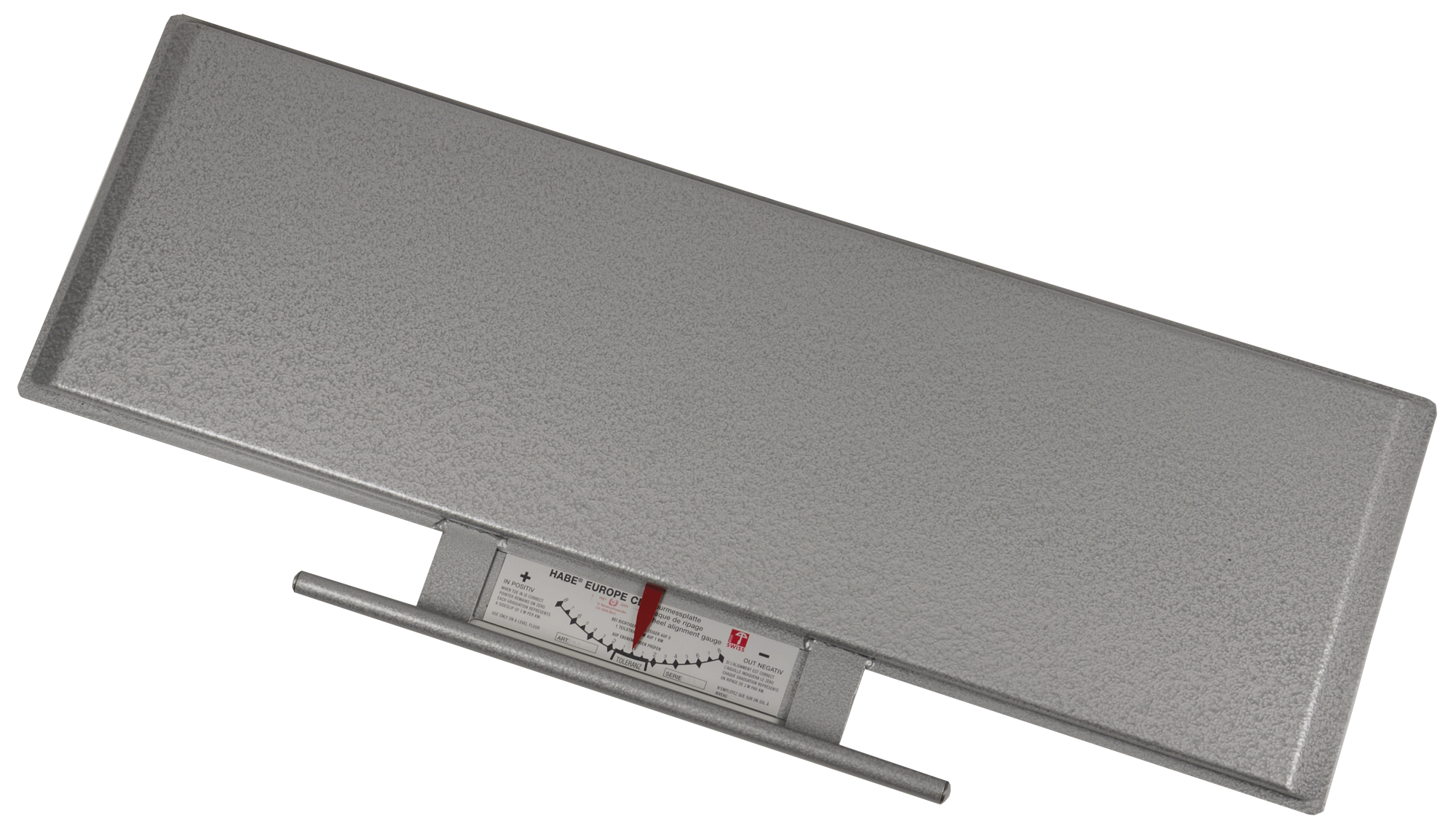 Tragbare Prüfplatte für Schnellkontrolle der Spur. Handlich und mobil, mit Messskala. Einsatzbereich: Personen- und leichte Lieferwagen.