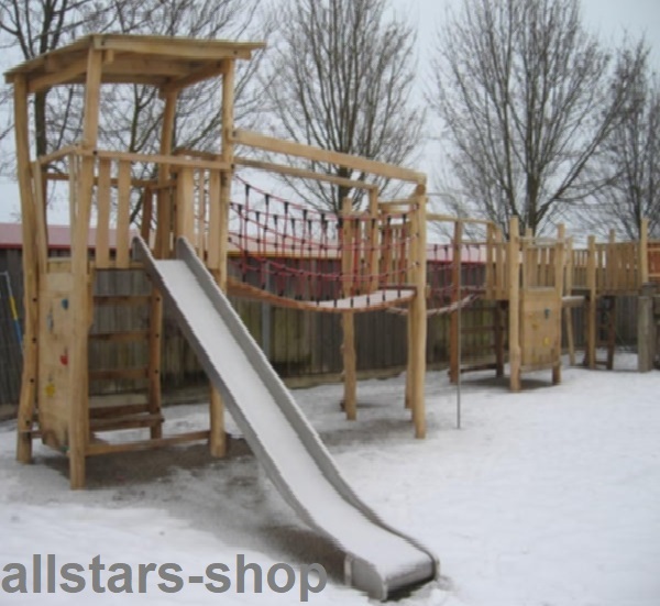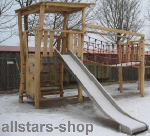 - Maße der erforderlichen Gesamtfläche incl. Rutsche und Fallschutzbereich: ca. 8,05 x 5,15 m, je nach Aufbau und Gelände