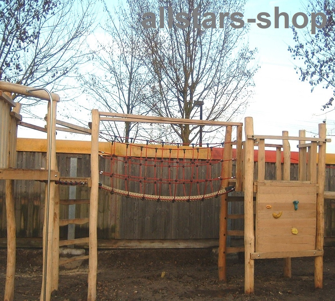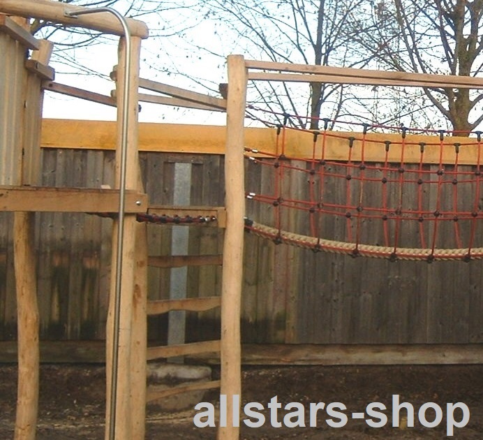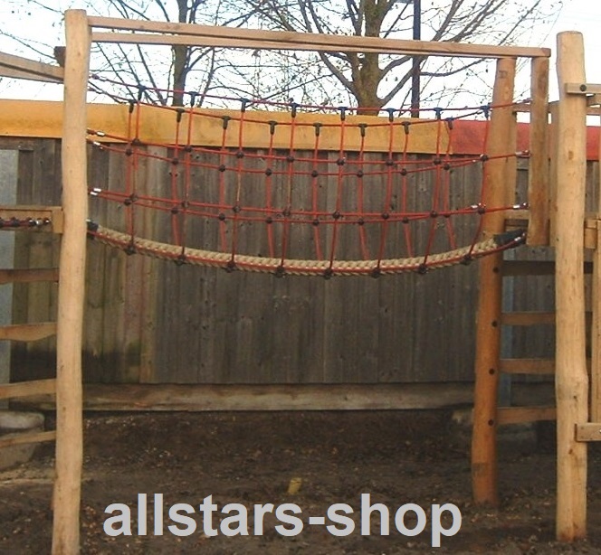 - 1 Dschungelbrücke: Laufseilbrücke aus Herkulestau, Maschenweite MW 30 x 30 cm, Höhe ca. 85 cm, Laufseil ca. 90 x 90 mm