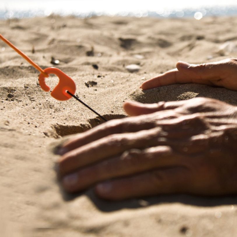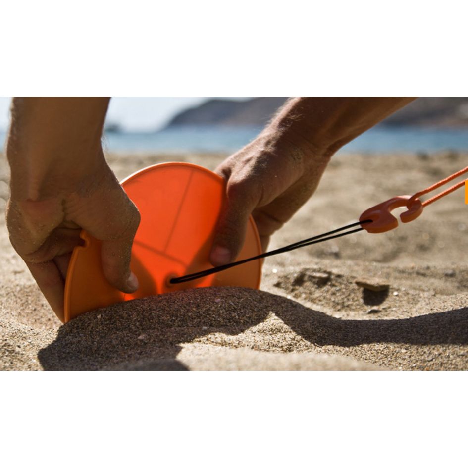 Der Strandanker ist ideal für den Gebrauch mit Strandschirmen und Sonnenblenden. Die Scheibe kann auch mit Kieselsteinen oder größeren Steinen beschwert werden.