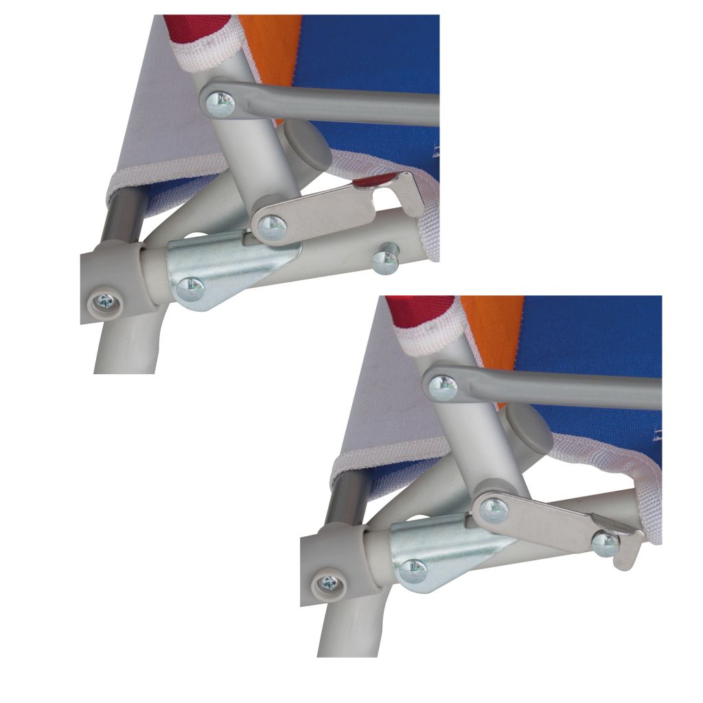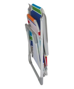 Robuster Strandstuhl aus Aluminium mit fester Rückenlehne im sommerlichen Design. Durch sein kompaktes Packmaß ist der Stuhl einfach zu transportieren und benötigt nur einen geringen Stauraum. Wunderbar geeignet für Strandausflüge. Mit Sicherheitsblockierung.